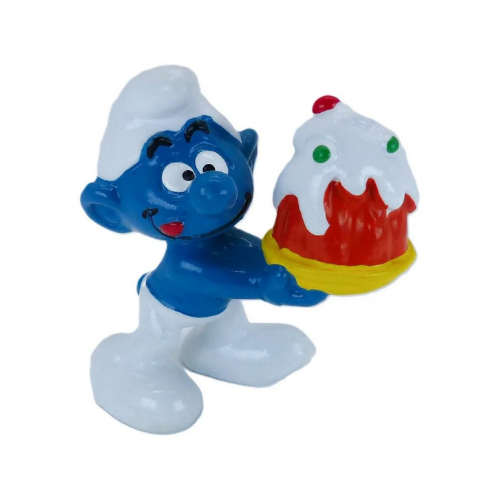 Cette figurine Schleich de l'univers des Schtroumpfs représente le Schtroumpf avec gâteau. Hauteur: 5,5cm.