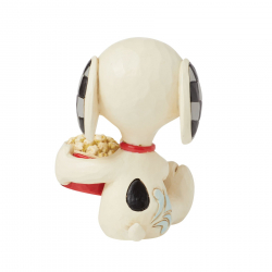 Plongez dans l'univers nostalgique de Charles Schulz avec cette magnifique pièce de collection issue de la gamme Peanuts par Jim Shore. Cette mini figurine met en scène Snoopy, le célèbre beagle, dans une posture détendue, tenant un grand pot de popcorn prêt pour une séance de cinéma. Chaque détail est minutieusement travaillé : la résine de haute qualité imite parfaitement le bois sculpté, tandis que les motifs géométriques et floraux, signatures de l'artiste, ornent le personnage. Peinte à la main, cette décoration apporte une touche de tendresse et d'originalité. Ses dimensions compactes de 6x7cm permettent de l'exposer facilement sur une étagère ou un bureau. C'est le cadeau idéal pour tout collectionneur cherchant une œuvre authentique et chaleureuse.