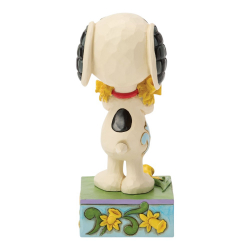 Cette ravissante figurine représente Snoopy tenant un bouquet of flowers, idéale pour les fans des Peanuts. Réalisée par l’artiste Jim Shore, elle allie l'artisanat traditionnel aux motifs folk art. Conçue en résine avec un aspect bois sculpté, elle mesure 7,5x5,5x13cm. Un objet de collection unique et peint à la main, parfait pour décorer votre intérieur.
