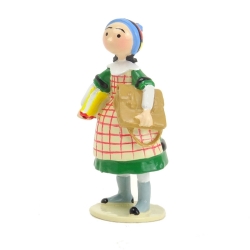 Bécassine avec son tambourin. Figurine de collection en plomb Pixi, tiré de la bande dessinée Bécassine. Entièrement sculptées et peintes à la main, les figurines Pixi sont de véritables pièces de collection. Numérotée et limitée à 1000 exemplaires édition avec certificat d'authenticité.