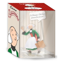 Bécassine avec sa pancarte: En Bretagne il fait beau plusieurs fois par jour ! du fabricant Plastoy. Statuette réalisée entièrement en résine et peinte à la main. Hauteur: 22cm.
