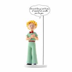 Cette statuette du Petit Prince en résine est inspirée de l'oeuvre d'Antoine de Saint-Exupery et a été créée par Plastoy. On ne voit bien qu'avec le coeur. Hauteur 18cm.