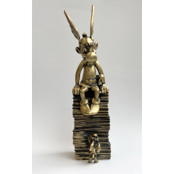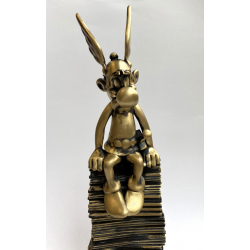 Joli scène Pixi à l'effigie de la célèbre BD d'Astérix et Obélix,: Astérix assis sur une pile d'albums avec idéfix. Edition limitée et numérotée à 200 exemplaires avec certificat d'authenticité. Hauteur: 20cm. Version en bronze.