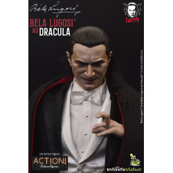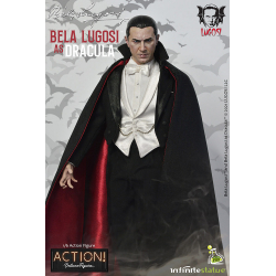 Figurine de collection en PVC peinte à la main Infinite Statue. Béla Lugosi Dracula. Échelle 1/6 avec des vêtements en tissu et inclus des accessoires et des pièces interchangeables. Edition limitée et numérotée à 200 exemplaires. Hauteur: 30cm.