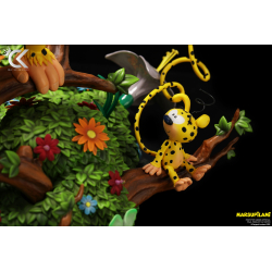 Figurine de collection en résine et PU Cartoon Kingdom, la famille Marsupilami. Edition limitée et numérotée à 275 exemplaires avec certificat d'authenticité. Lithographie exclusive de l'auteur Batem avec un mot accompagnant son dessin. Hauteur: 28cm.