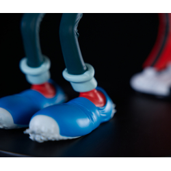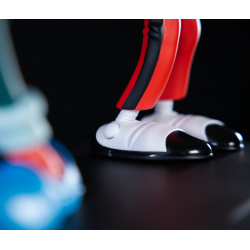 La figurine est fabriquée en résine polyuréthane travaillée par coulée dans des moules élastomère et ensuite revêtue d’une peinture mate où chaque code couleur est défini en collaboration avec les ayants-droits. Afin de rigidifier la figurine, des inserts métalliques sont présents dans les endroits les plus avares de résines.