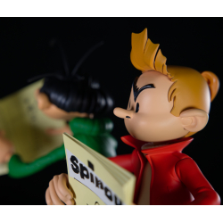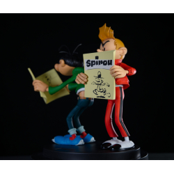 Figurine de collection Maris Jothieu en résine et métal: Gaston Lagaffe et Spirou (Journal de Tintin). Edition limitée et numérotée à 250 exemplaires avec certificat d'authenticité. Hauteur: 31,6cm.