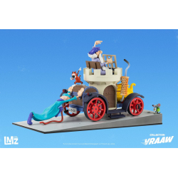 Saynète de collection Léonard sculptée par Yann Berthonneau et réalisée par LMZ Collectibles: On retrouve ici Léonard, son fidèle disciple Basile, Raoul le chat et Bernadette la souris autour d'une invention dont Léonard a le secret: la Léomobile. Edition limitée et numérotée à 90 exemplaires avec certificat d'authenticité. Sérigraphie inédite, signée à la main par Turk. Longueur: 35,5cm.