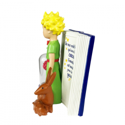 Cette figurine en résine peinte à la main du Petit Prince devant son livre est inspirée de l'oeuvre d'Antoine de Saint-Exupery et a été créée par Enesco. Hauteur: 16cm.