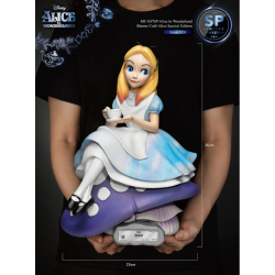 Collection Master Craft de Beast Kingdom. Simple mais tellement représentative, Alice prend son thé assise sur un champignon géant. Edition limitée et numérotée à 1951 exemplaires avec certificat d'authenticité. Modèle fini et peint à la main. Hauteur: 36cm.