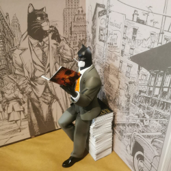 John Blacksad s'appuyant sur une pile d'albums. Superbe figurine de collection Plastoy en résine, peinte à la main. Hauteur: 25cm.