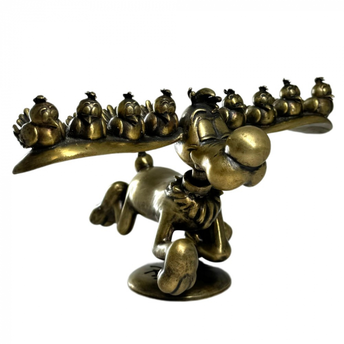 Figurine en bronze par Pixi tirée des aventures de Boule et Bill: Bill avec les mésanges. Edition limitée et numérotée à 65 exemplaires avec certificat d'authenticité. Hauteur: 10cm.