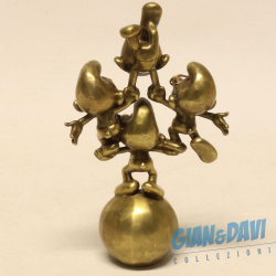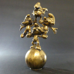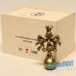 Figurine en bronze par Pixi tirée des aventures des Schtroumpfs: Les acrobates. Edition limitée et numérotée à 100 exemplaires avec certificat d'authenticité. Boîte en bois. Exclu Gian & Davi Collezioni. Hauteur: 19,4cm.