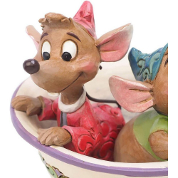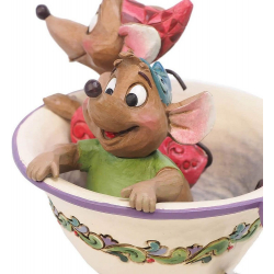 Figurine en résine Disney Traditions, Cendrillon: Jaq et Gus. Jaq et Gus regardent par-dessus la tasse de thé de Lady Tremaine alors qu'ils élaborent un plan pour voler la clé dont ils ont besoin pour libérer Cendrillon. Conçue par le sculpteur primé Jim Shore pour Disney Traditions, la figurine est fabriquée à partir de poudre de pierre et peinte à la main. Hauteur: 12cm.