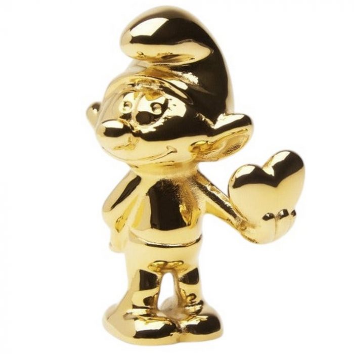 Figurine de collection par Skultuna tirée des aventures des Schtroumpfs: Schtroumpf avec cœur. Acier 316L de haute qualité plaqué or. Hauteur: 5,5cm.