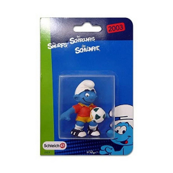 Figurine PVC de la marque Schleich, le Schtroumpf Meneur de jeu de football. 6cm.