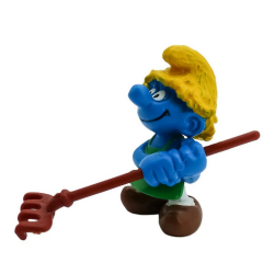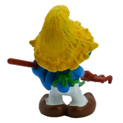 Figurine PVC de la marque Schleich, Le Schtroumpf jardinier avec un rateau 1981. 5,5cm.