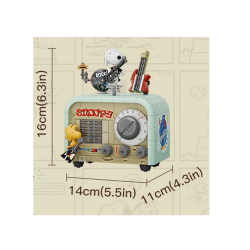 Jeu de construction Peanuts Snoopy: Radio. Inspiré de l'œuvre de Charles M. Schulz et a créé par Pantasy. L'ensemble se compose de 305 pièces. L'âge minimum recommandé est de 6 ans. Comprend un manuel d'instructions. Tournez le bouton de la radio pour faire danser Snoopy - donnant vie au rock rétro. Hauteur: 16cm.