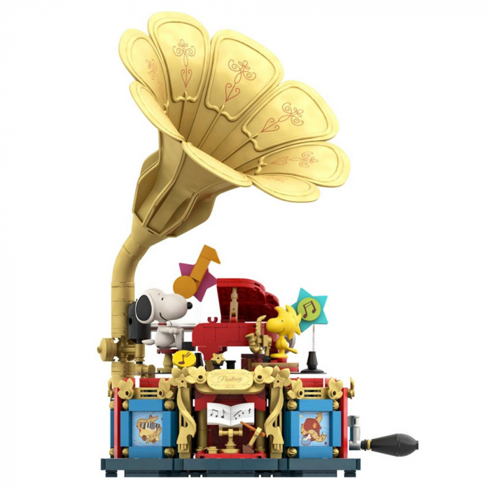 Jeu de construction Peanuts Snoopy: Phonographe. Inspiré de l'œuvre de Charles M. Schulz et a créé par Pantasy. L'ensemble se compose de 806 pièces. L'âge minimum recommandé est de 6 ans. Comprend un manuel d'instructions. Hauteur: 31,5cm.