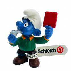 Figurine en PVC Schleich, Les Schtroumpfs: Le Schtroumpf arbitre de foot avec carton rouge. 5,5cm.