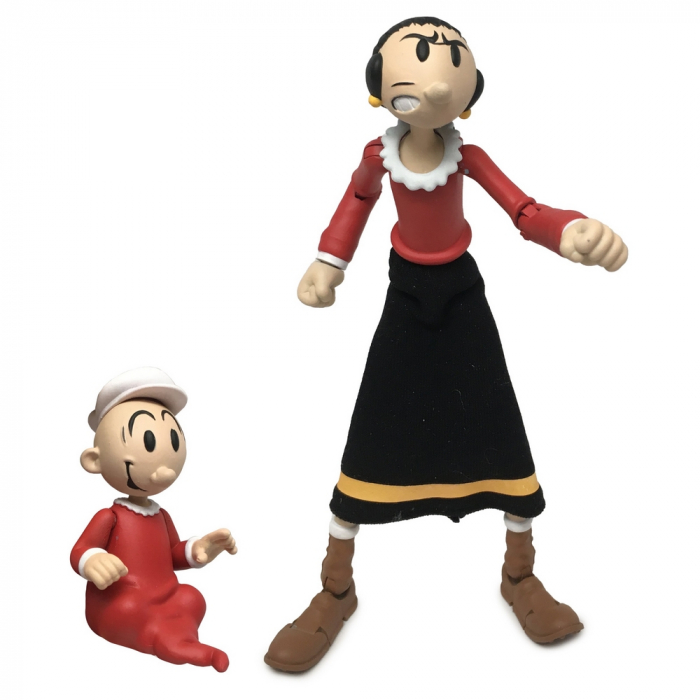 Figurine articulée de collection Boss Fight Studio, Popeye: Olive Oyl avec Mimosa. La figurine vous sera livrée avec ses accessoires interchangeables. Hauteur: 15cm.