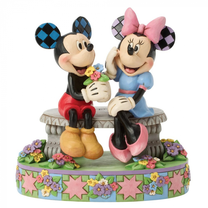 Figurine en résine Disney Traditions, Mickey et Minnie: Fleurs. Mickey offre un bouquet à Minnie, qui rougit avec douceur. Une scène pleine de charme et d’émotion. Conçu par l'artiste et sculpteur primé Jim Shore pour la marque Disney Traditions. Sculpté et peint à la main. Livré dans une boîte cadeau. Hauteur: 15,5cm.