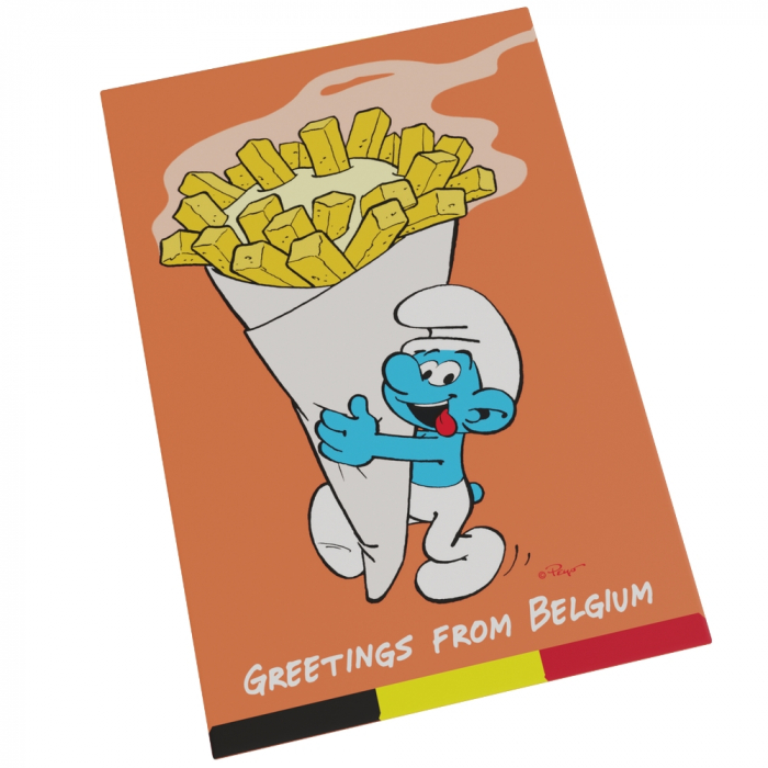 Aimant décoratif rectangulaire Puppy Les Schtroumpfs, Cornet de frites. 55x79mm.