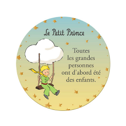 Magnet rond décoratif Le Petit Prince: Le Petit Prince avec son cerf-volant, 55mm.