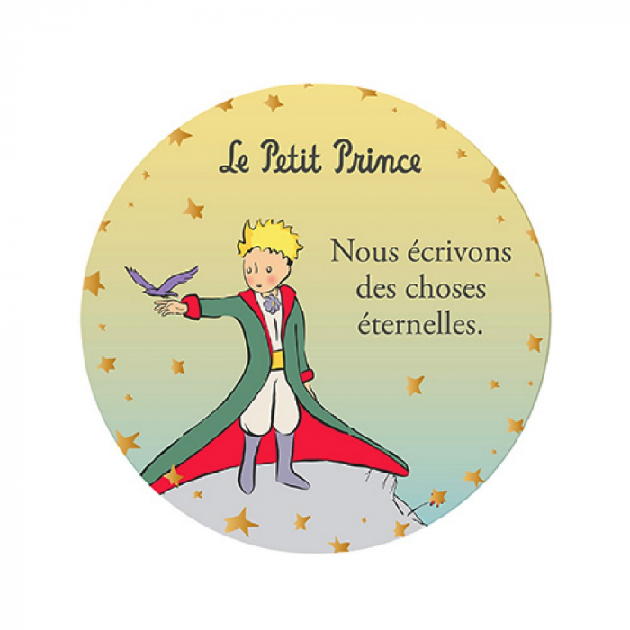 Magnet rond décoratif Le Petit Prince en habit de prince et l'oiseau, 55mm.
