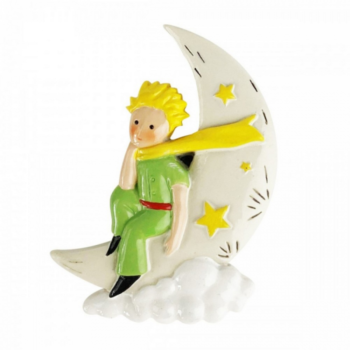 Magnet figurine décoratif en résine Enesco Le Petit Prince assis sur la lune. Hauteur: 7cm.