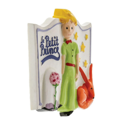 Magnet figurine décoratif en résine Enesco Le Petit Prince devant son livre. Hauteur: 8cm.