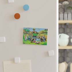 Aimant magnet décoratif rectangulaire Astérix et Obélix: les personnages du village. Dimensions: 79x55mm.