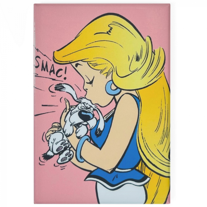 Aimant magnet décoratif rectangulaire Astérix et Obélix: Falbala et Idéfix. Dimensions: 79x55mm.