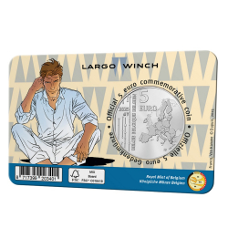 Une édition exceptionnelle en l'honneur de Largo Winch. Pièce de 5 € éditée par la Monnaie Royale de Belgique. Edition limitée à 7500 unités. Cours légal en Belgique, pas de mise en circulation. Relief BU.