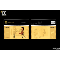 Billet de collection CK Lucky Luke: Calamity Jane. Produit officiel, édition limitée par Cartoon Kingdom. Chaque ticket est soigneusement imprimé en Haute Définition sur du papier PVC indéchirable, lavable et recouvert d'une fine couche de dorure très brillante. Dimensions: 14,5x7,5cm.