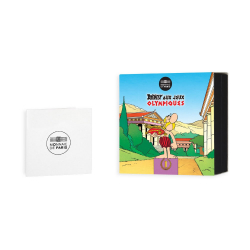 Pièce de 10 € éditée par la Monnaie de Paris. Edition limitée à 5000 exemplaires avec certificat d'authenticité. Cours légal en France, pas de mise en circulation. Qualité Belle épreuve (BE). Astérix aux Jeux Olympiques.