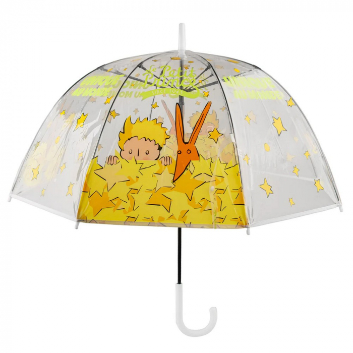 Parapluie Le Petit Prince: et le Renard. Fabriqué dans un magnifique matériau transparent, ce parapluie doté d'une toile en forme de dôme qui vous permet de conserver une vue à 360 degrés sur l'extérieur. Dimensions en position ouverte: 86cm de diamètre.