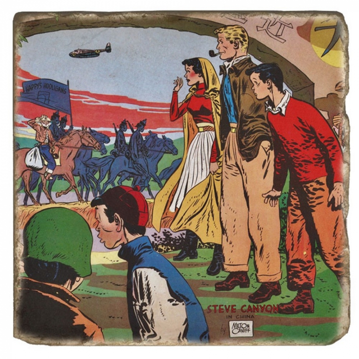 Marbre Vieilli de collection Steve Canyon, Milton Caniff: Steve Canyon en Chine. Tirage: 29 exemplaires numérotés de 1 à 29. L'étui protégeant chaque marbre est orné d'une plaque en étain Akimoff collections.