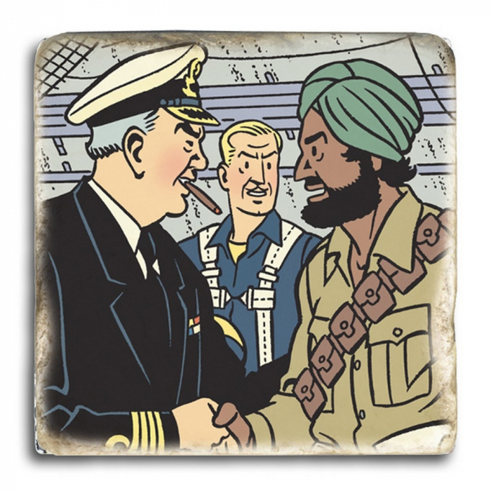 Marbre Vieilli Blake et Mortimer: La Vallée des immortels, Tome 1. Poignée de mains entre l'Amiral Gray et le Sergent-Chef Nazir devant le Capitaine Blake à la base secrète d'Ormuz. Tirage: 29 exemplaires numérotés de 1 à 29.