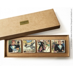 4 Marbres de collection n°89, n°90, n°91, n°92 Blake et Mortimer: La Vallée des immortels T1. Tirage: 29 exemplaires numérotés de 1 à 29. L'étui protégeant chaque marbre est orné d'une plaque en étain Akimoff collections. Ils sont ornés d'un aimant au dos.