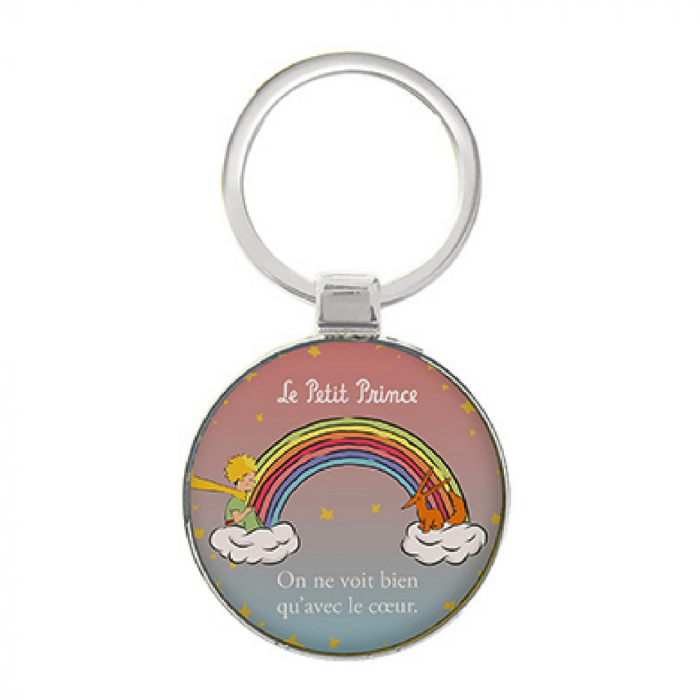 Porte-clés rond en métal Kiub de collection Le Petit Prince et l'arc-en-ciel. Diamètre: 4cm.