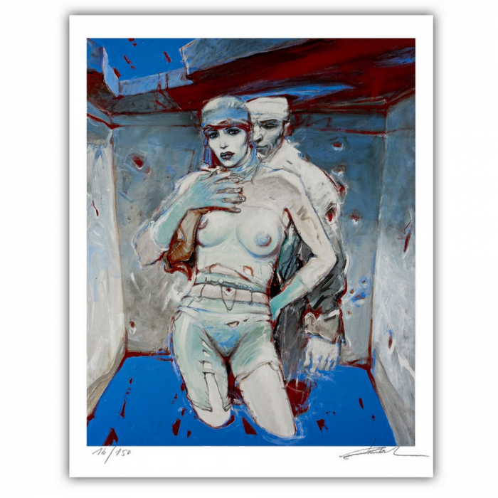 Estampe pigmentaire d'art issue d'un dessin original de Enki Bilal. Editée sur un papier d'art Hahnemuhle Photo Rag 308g. Edition limitée et numérotée à 150 exemplaires avec certificat d'authenticité, signée à la main par Enki Bilal. 40x50cm. Grand Froid.