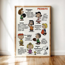 Poster affiche offset de collection Peanuts, Snoopy: Personnages. Grande affiche pour retrouvez l’univers tendre et intemporel de Snoopy avec ce poster sous licence officielle. Un must-have pour les fans des Peanuts et des illustrations pleines de charme. Imprimée sur papier brillant de 150g. 61x91,5cm.