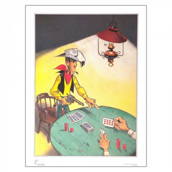 Poster affiche offset de Lucky Luke éditée par Equinoxe. Impression offset sur papier steinbach. 60x80cm. Lucky Luke Poker.