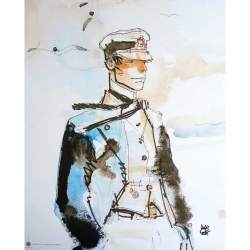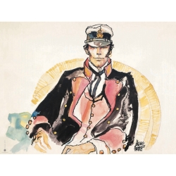 Cette affiche offset d'art dérivée de la bande dessinée Corto Maltese de Hugo Pratt est imprimée sur un papier d'art Fedrigoni Stucco old mill 250g. 24x30cm. Mauresque.