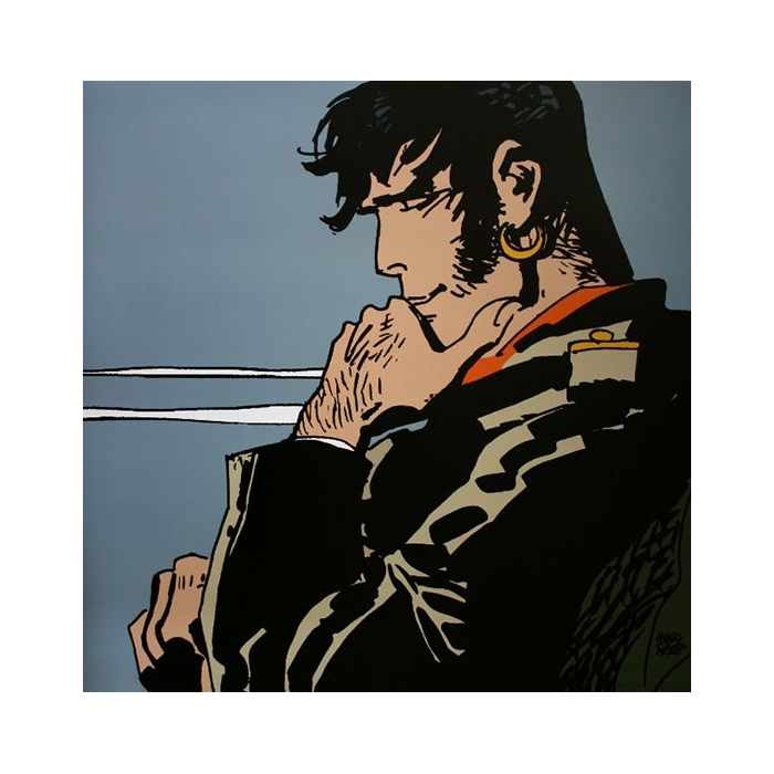 Cette affiche offset d'art dérivée de la bande dessinée Corto Maltese de Hugo Pratt est imprimée sur un papier d'art épais satiné. 60x60cm. Un héros, moi...