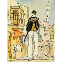 Cette affiche offset d'art dérivée de la bande dessinée Corto Maltese de Hugo Pratt est imprimée sur un papier d'art épais satiné. 100x50cm. Corto avec les femmes.