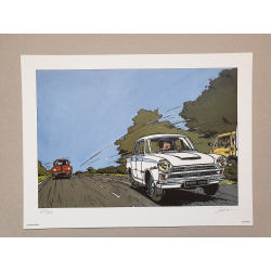 Ce poster représente la couverture dessinée par Jean Graton dans Le Journal de Tintin de 1959: Le pilote sans visage ! Nº19. Edition limitée et numérotée à 500 exemplaires. 50x70cm. Lot de 20 cartes postales des couvertures de Jean Graton offert à l’achat de cette affiche !