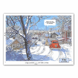 Cette affiche offset d'art dérivée de la bande dessinée Valérian et Laureline de Jean-Claude Mézières est imprimée sur un papier d'art Fedrigoni Stucco Old Mill 250g. 60x50cm. Le cinquième élément: Taxi.