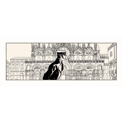 Sérigraphie limitée d'art dérivée de la bande dessinée Corto Maltese de Hugo Pratt. Edition limitée et numérotée à 600 exemplaires avec certificat d'authenticité. 50x20cm. Théâtre et les chats.